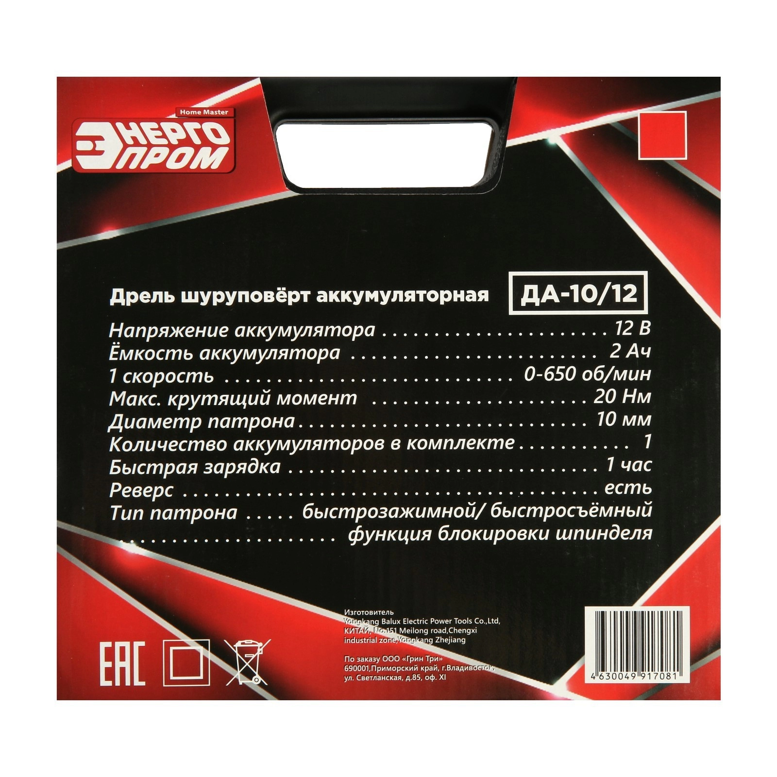 Дрель аккум. ЭНЕРГОПРОМ ДА-10 Li-Ion *